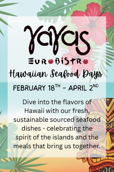 Aloha, seafood lovers! 🌺 Escape the ordinary and dive into Hawaiian Seafood Days at YaYa’s. We’re bringing the vibrant, sun-drenched flavors of the islands straight to Salina with a celebration of fresh, sustainably sourced Pacific treasures. While our heart is in the Mediterranean, our soul is currently at sea. Experience exclusive, chef-crafted dishes that blend our signature Euro Bistro style with the spirit of Hawaii. Join our Ohana and make your reservation now… Mahalo!